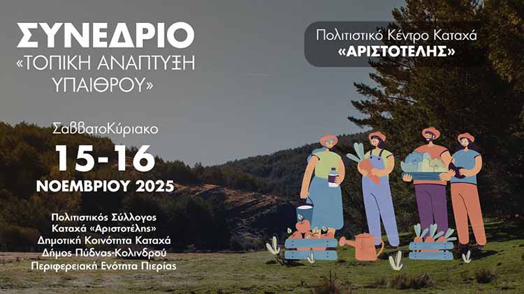Η Τοσκάνη της Ελλάδος, η βόρεια Πιερία, θα μπορούσε να προσβλέπει σε μια εξέλιξη και ένα μέλλον τέτοιας μορφής, με ορίζοντα αποτελεσμάτων το 2040. Ένα ΑΓΡΟΤΙΚΟ ΣΥΜΦΩΝΟ ΥΠΑΙΘΡΟΥ 2040 (Rural Pact) για μια τέτοια προοπτική προτείνει να συνταχθεί ο Πολιτιστικός Σύλλογος Καταχά-ΑΡΙΣΤΟΤΕΛΗΣ και οργανώνει Συνέδριο με θέμα: ΤΟΠΙΚΗ ΑΝΑΠΤΥΞΗ ΥΠΑΙΘΡΟΥ, 15-16 Νοε 2025, στο Πολιτιστικό Κέντρο «ΑΡΙΣΤΟΤΕΛΗΣ» στον Καταχά, του Δήμου Πύδνας-Κολινδρού, της Περιφερειακής Ενότητας Πιερίας.