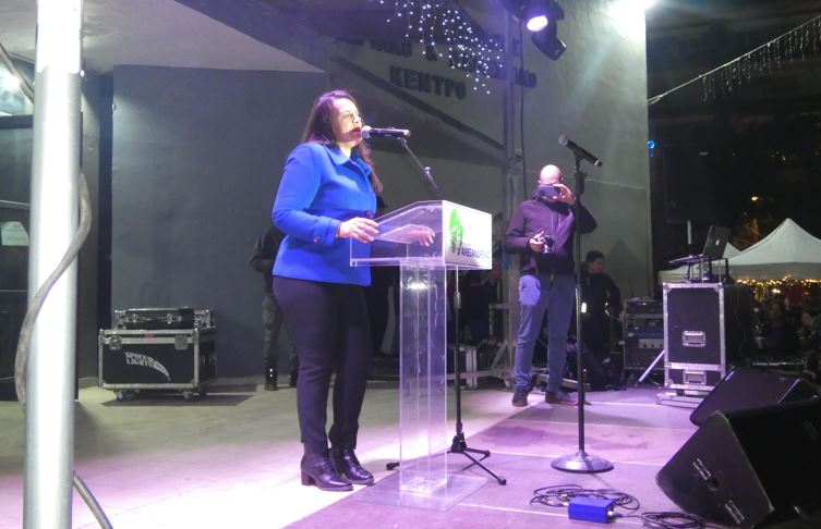 Η Αντιδήμαρχος Ελένη Λαφαζάνη προλόγισε την εκδήλωση και ευχαρίστησε όλο το κόσμο για την παρουσία του, μπροστά και γύρω από το Πνευματικό Κέντρο. Στη συνέχεια κάλεσε τον Δήμαρχο Αλεξάνδρειας Παναγιώτη Γκυρίνη ο οποίος ευχήθηκε καλές γιορτές σε όλους τους δημότες και ξεκινήσε την αντίστροφη μέτρηση για το άναμμα του Χριστουγεννιάτικου δένδρου.