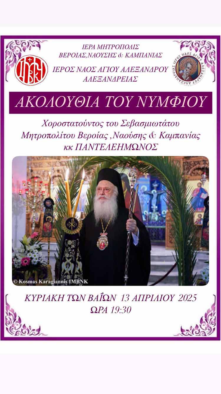 Εκκλησία Αλεξάνδρεια – Ι.Ν. Αγίου Αλεξάνδρου: Ακολουθία του Νυμφίου Από Έμβολος - 11/04/2025 Ι.Ν. Αγίου Αλεξάνδρου Αλεξάνδρειας: Ακολουθία του Νυμφίου την Κυριακή των Βαΐων.