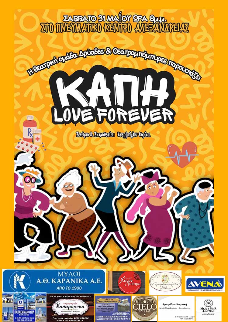ξεκαρδιστική κωμωδία «ΚΑΠΗ LOVE FOR EVER», το Σάββατο 31 Μαίου και ώρα