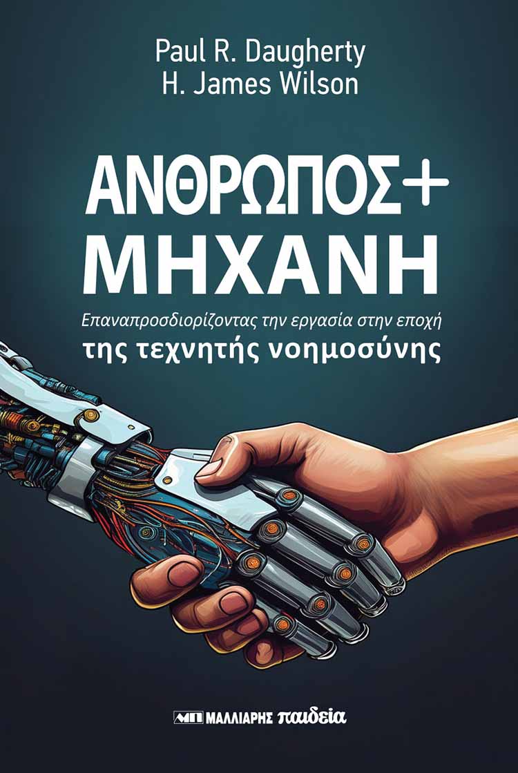 Μόλις κυκλοφόρησε από τις εκδόσεις Μαλλιάρης-Παιδεία, μεταφρασμένο στα ελληνικά, το τρίτο βιβλίο της νέας σειράς για την τεχνητή νοημοσύνη, με τίτλο “ Άνθρωπος + Μηχανή. Επαναπροσδιορίζοντας την εργασία στην εποχή της τεχνητής νοημοσύνης”, των Paul R. Daugherty / H. James Wilson (Harvard Business Review Press).