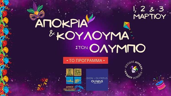 Ο Δήμος Δίου-Ολύμπου σας προσκαλεί στο τριήμερο εορταστικών εκδηλώσεων το Σαββατοκύριακο της Αποκριάς, 1 και 2 Μαρτίου και την Καθαρά Δευτέρα 3 Μαρτίου 2025.