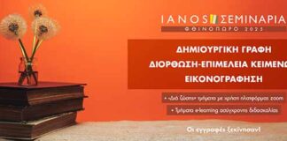 Ιανός: Οι εγγραφές για τα σεμινάρια δημιουργικής γραφής, διόρθωσης και επιμέλειας...
