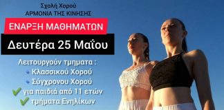 Σχολή Χορού Αρμονία της Κίνησης: Έναρξη μαθημάτων 25 Μαΐου 2020