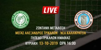 Ζωντανή μετάδοση αγώνα Γ Εθνικής: Μέγας Αλέξανδρος Τρικάλων – Ν. Καλλικράτεια