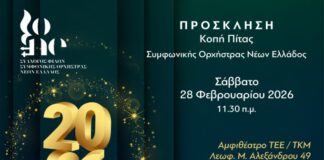 Αλλαγή χώρου διεξαγωγής για την κοπή πίτας της Συμφωνικής Ορχήστρας Νέων...