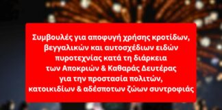 Απόκριες χωρίς κροτίδες: Προστατεύουμε τους πολίτες και τα ζώα μας