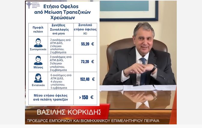 B. Κορκίδης: Η διαφάνεια ανέδειξε τα «κρυφά έξοδα» των τραπεζικών χρεώσεων και εξοικονόμησε, τουλάχιστον, 150 ευρώ τον χρόνο στον μέσο πελάτη των τραπεζών