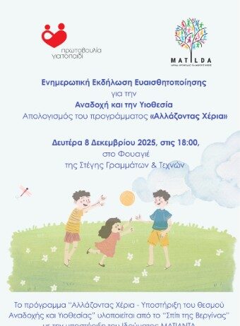 Πρωτοβουλία για το Παιδί: Πρόσκληση σε Ενημερωτική Εκδήλωση Ευαισθητοποίησης για την Αναδοχή και την Υιοθεσία – Απολογισμός του προγράμματος «Αλλάζοντας Χέρια»