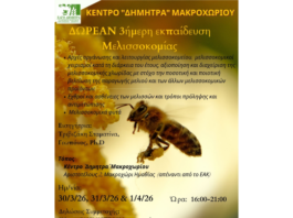 Δωρεάν Τριήμερο Εκπαιδευτικό Σεμινάριο Μελισσοκομίας στο Κέντρο «Δήμητρα» Μακροχωρίου