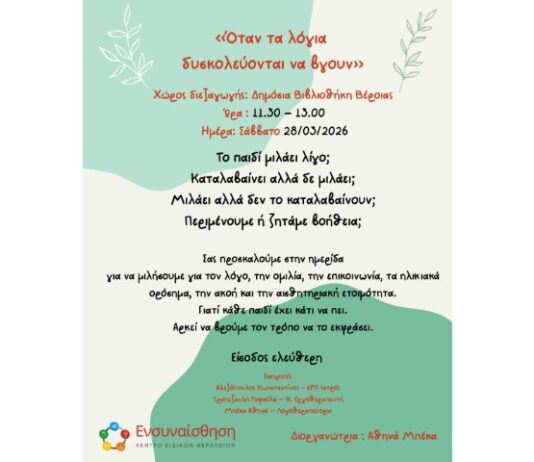 «Όταν τα λόγια δυσκολεύονται να βγουν»: Δωρεάν Ημερίδα για Γονείς στη Βιβλιοθήκη Βέροιας