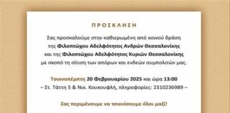 Πρόσκληση σε κοινή δράση της Φιλοπτώχου Αδελφότητος Ανδρών Θεσσαλονίκης και της...