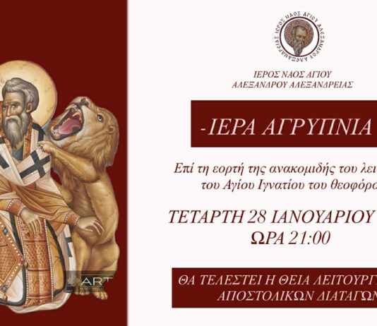 Ι.Ν. Αγίου Αλεξάνδρου Αλεξάνδρειας: Ιερά Αγρυπνία