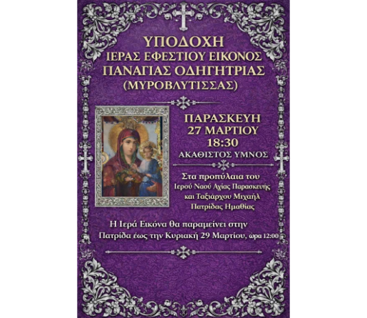 Υποδοχή Ιεράς Εφεστίου Εικόνος Παναγίας Οδηγήτριας (Μυροβλυτίσσης) στην Πατρίδα Ημαθίας