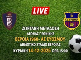 Ζωντανή μετάδοση αγώνα Γ Εθνικής: ΒΕΡΟΙΑ 1960- ΑΕ ΕΥΟΣΜΟΥ