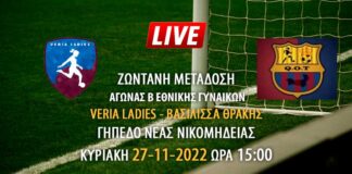 Ζωντανή μετάδοση αγώνα Β Εθνικής γυναικών: Veria Ladies – Βασίλισσα Θράκης