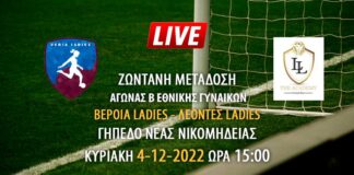 Ζωντανή μετάδοση αγώνα Β Εθνικής γυναικών: Βέροια Ladies – Λέοντες Ladies