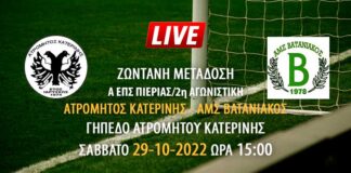Ζωντανή μετάδοση αγώνα Α ΕΠΣ Πιερίας/2η αγωνιστική: Ατρόμητος Κατερίνης-ΑΜΣ Βατανιακός