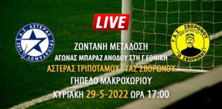 Ζωντανή μετάδοση αγώνα μπαράζ ανόδου στη Γ Εθνική: ΑΣΤΕΡΑΣ ΤΡΙΠΟΤΑΜΟΥ –...