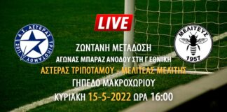 Ζωντανή μετάδοση αγώνα μπαράζ ανόδου στη Γ Εθνική: Αστέρας Τριποτάμου –...
