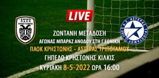Ζωντανή μετάδοση αγώνα μπαράζ ανόδου στη Γ Εθνική: ΠΑΟΚ Κρηστώνης –...
