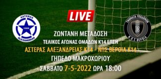 Ζωντανή μετάδοση τελικού αγώνα ομάδων Κ14 ΕΠΣΗ: Αστέρας Αλεξάνδρειας Κ14 –...