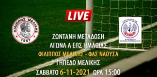 Ζωντανή μετάδοση αγώνα Α ΕΠΣ ΗΜΑΘΙΑΣ: Φίλιππος Μελίκης – ΦΑΣ Νάουσας