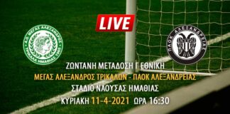 Ζωντανή μετάδοση αγώνα Μέγα Αλέξανδρου Τρικάλων – ΠΑΟΚ Αλεξάνδρειας