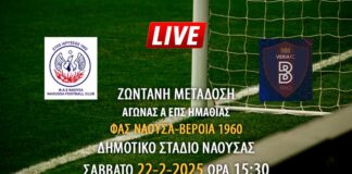 Δείτε σε ζωντανή μετάδοση τον αγώνα Α ΕΠΣ Ημαθίας: ΦΑΣ ΝΑΟΥΣΑ...