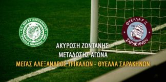 Ακύρωση ζωντανής μετάδοσης αγώνα Μέγας Αλέξανδρος Τρικάλων – Θύελλα Σαρακηνών
