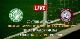 Ζωντανή μετάδοση αγώνα Γ Εθνικής: Μέγας Αλέξανδρος Τρικάλων – Θύελλα Σαρακηνών