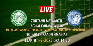 Ζωντανή μετάδοση αγώνα Κυπέλλου Α ΕΠΣΗ: Μέγας Αλέξανδρος Τρικάλων-Μέγας Αλέξανδρος Αγίας...