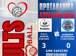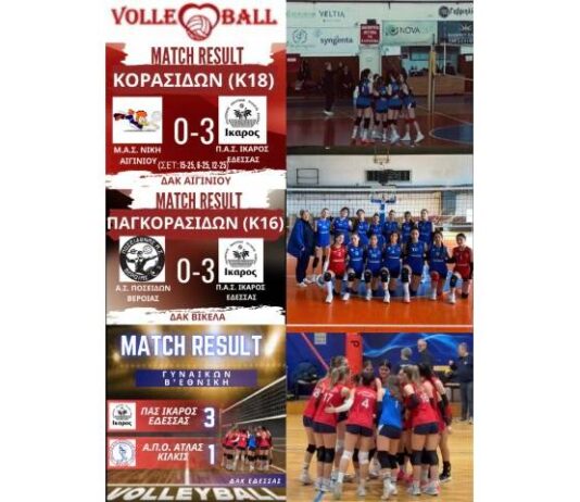 Π.Α.Σ. ΙΚΑΡΟΣ ΕΔΕΣΣΑΣ: Πρεμιέρα και 2η αγωνιστική για το πρωτάθλημα Κορασίδων (Κ18) βόλεϊ