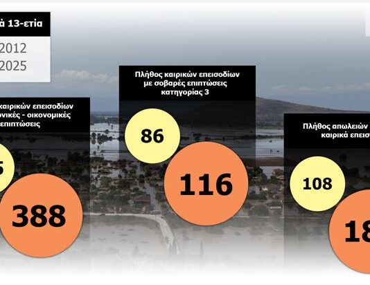 ΜΕΤΕΟ/ Εθνικό Αστεροσκοπείο Αθηνών: Αυξητική τάση παρουσιάζουν τα καιρικά επεισόδια με κοινωνικο-οικονομικές επιπτώσεις και ανθρώπινες απώλειες από το 2000 έως το 2025