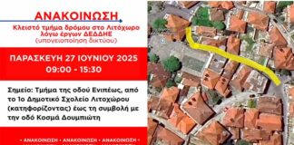 Ανακοίνωση: Κλειστό τμήμα δρόμου στο Λιτόχωρο την Παρασκευή 27 Ιουνίου (09:00-15:30)...