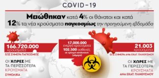 COVID-19: Γράφημα – Μειώθηκαν κατά 4% οι θάνατοι και κατά 12%...