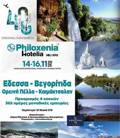 Η Έδεσσα & η Ορεινή Πέλλα συμμετέχει στην έκθεση τουρισμού PHILOXENIA 2025 στην Θεσσαλονίκη