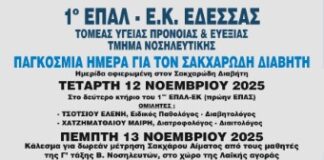 ΕΠΑΛ – ΕΚ Έδεσσας: Ομιλία για τον Διαβήτη-Δωρεάν μέτρηση σακχάρου