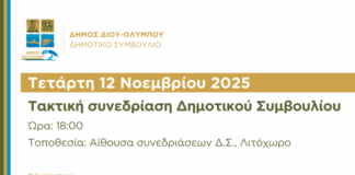 Δήμος Δίου-Ολύμπου: Πρόσκληση στην τακτική συνεδρίαση του Δημοτικού Συμβουλίου την Τετάρτη...