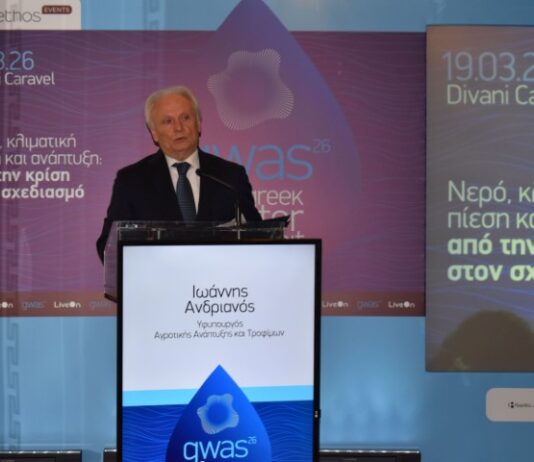 Ο Γιάννης Ανδριανός στο Greek Water Summit 2026 για τη διαχείριση του νερού και τη βιώσιμη ανάπτυξη του πρωτογενούς τομέα