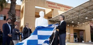 Ο Πρωθυπουργός Κυριάκος Μητσοτάκης στην τελετή αποκαλυπτηρίων προτομής στη μνήμη του...
