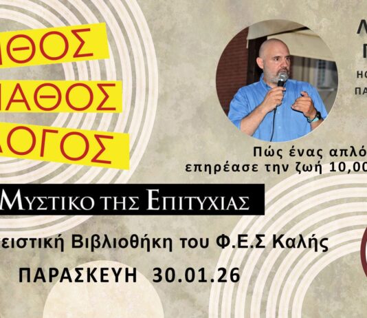 Παρουσίαση του βιβλίου «Ήθος-Πάθος-Λόγος, το αρχαίο μυστικό της επιτυχίας» στη Δανειστική Βιβλιοθήκη του Φ.Ε.Σ Καλής