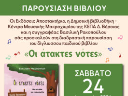 Το δίγλωσσο παιδικό βιβλίο ”Οι άτακτες νότες” της εκπαιδευτικού-συγγραφέα Βασιλικής Ρακοπούλου από την Ημαθία παρουσιάζεται στη βιβλιοθήκη Μακροχωρίου