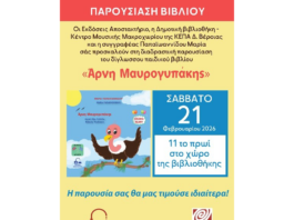 Παρουσίαση του δίγλωσσου παιδικού βιβλίου «Άρνη Μαυρογυπάκης» της Μαρίας Παπαϊωαννίδου στη βιβλιοθήκη Μακροχωρίου (21/2)