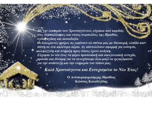 Ευχές του Αντιπεριφερειάρχη Ημαθίας Κ. Καλαϊτζίδη για τα Χριστούγεννα