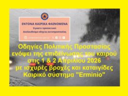 Οδηγίες Πολιτικής Προστασίας ενόψει της επιδείνωσης του καιρού την Τετάρτη 1 και Πέμπτη 2 Απριλίου 2026 με κατά τόπους ισχυρές βροχές και καταιγίδες