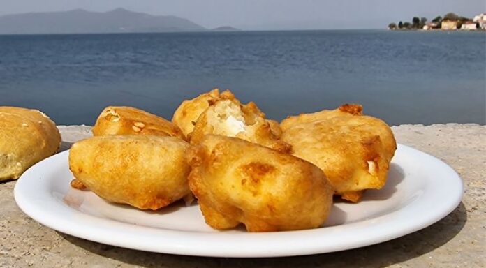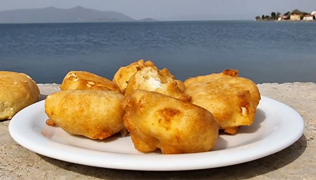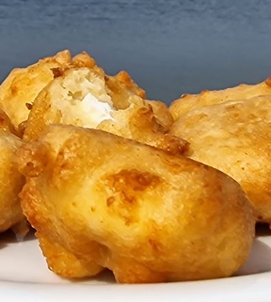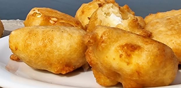 Μόλις έρθει σε επαφή με το καυτό λάδι ο χυλός φουσκώνει και η φέτα μένει στο κέντρο.