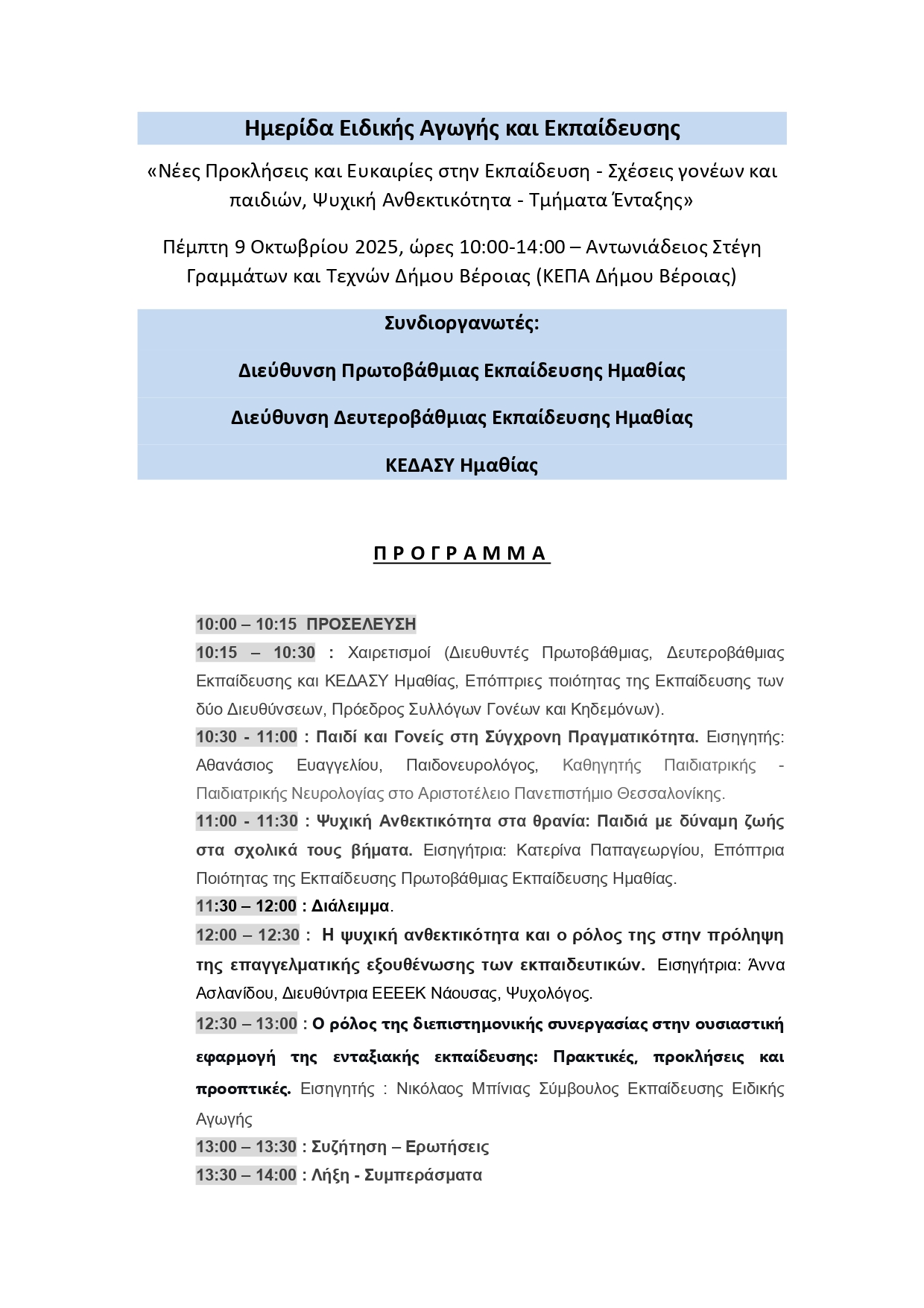 Το πρόγραμμα της ημερίδας