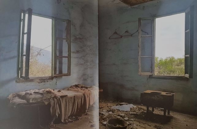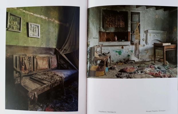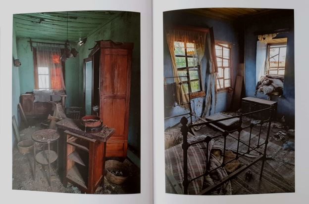Κάθε σελίδα του λευκώματος είναι και μια σιωπηλή εξιστόρηση. Ένα άδειο σπίτι γίνεται ποίημα. Ένα εγκαταλειμμένο δωμάτιο, μπορεί να είναι ένας ολόκληρος κόσμος. Και κάπως έτσι, μέσα από το φως, τη σκιά και τη σκόνη, αναδύεται μια άλλη όψη της συλλογικής μας ιστορίας, όχι από τις επίσημες, αλλά από εκείνες που κουβαλούν οι τοίχοι, τα πατώματα, τα βλέμματα που δεν πρόλαβαν να αποτυπωθούν.
