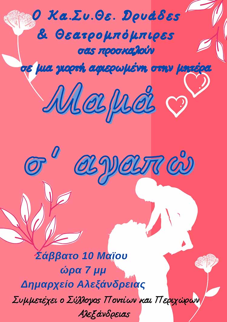 Ο Καλλιτεχνικός Σύλλογος Δρυάδες και Θεατρομπόμπιρες σας προσκαλούν σε μια γιορτή ύμνος προς τη μητέρα!!!!